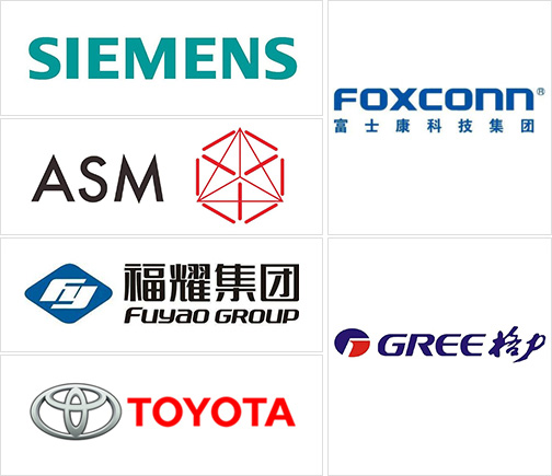 眾多國內(nèi)外知名企業(yè)見證:富士康、格力、美的、赫比、福耀、東風(fēng)、豐田、中國一汽,住友,松下,格蘭仕、西門子、廣東宏遠等。